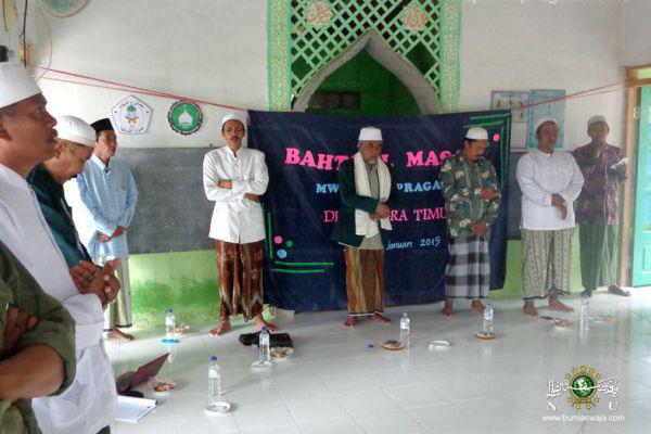 Sebagaimana bulan sebelumnya, Ahad, 27 Rabiul Awal 1436 H/ 18 Januari 2015 M bertempat di Mushalla Assyifa’ NU Kaduara Timur, MWC NU Pragaan kembali gelar Sidang Bahtsul Masail dan Konsolidasi bulanan MWC. Kali ini masail yang dibahas dan diputuskan adalah dianjurkannya mencium tangan alim ulama, atau guru karena memandang agama dan keshalehannya. Makruh mencium tangan orang lain karena kekayaannya. Pada kesempatan itu pula disampaikan hasil keputusan Bahtsul Masail PCNU Sumenep tentang BANK ASI, persiapan pelantikan pengurus MWC dan lembaga, ragam persiapan kegiatan lembaga, dan kometmen bersama untuk menjadikan Konsolidasi Bulanan sebagai ajang menyerap aspirasi ranting NU. (Zbr)
